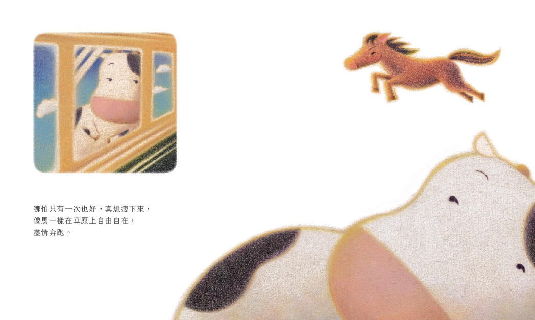 細膩的色鉛筆繪製的插圖,精緻且溫柔的畫面,以悠然的節奏,輕輕的打動讀者的心。簡短而有力量的句子,不遮掩事實的態度,反省食用動物以及圈養動物的意義。