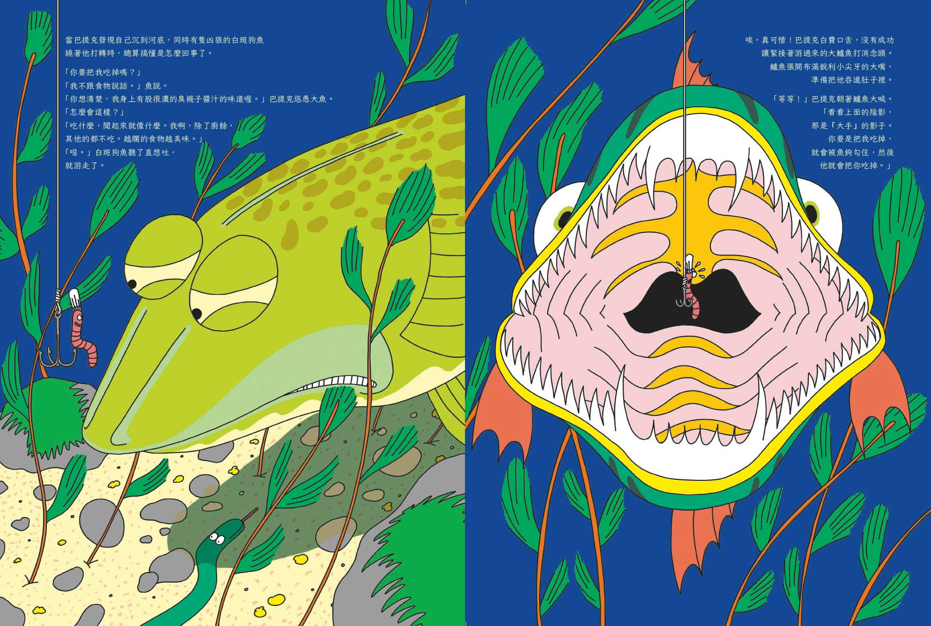 故事裡的蚯蚓吃腐壞的食物,魚兒吃蚯蚓,人類吃魚。在大自然的食物鏈中,生物們形成了一個生態的能量傳遞網,相互影響彼此的生活。