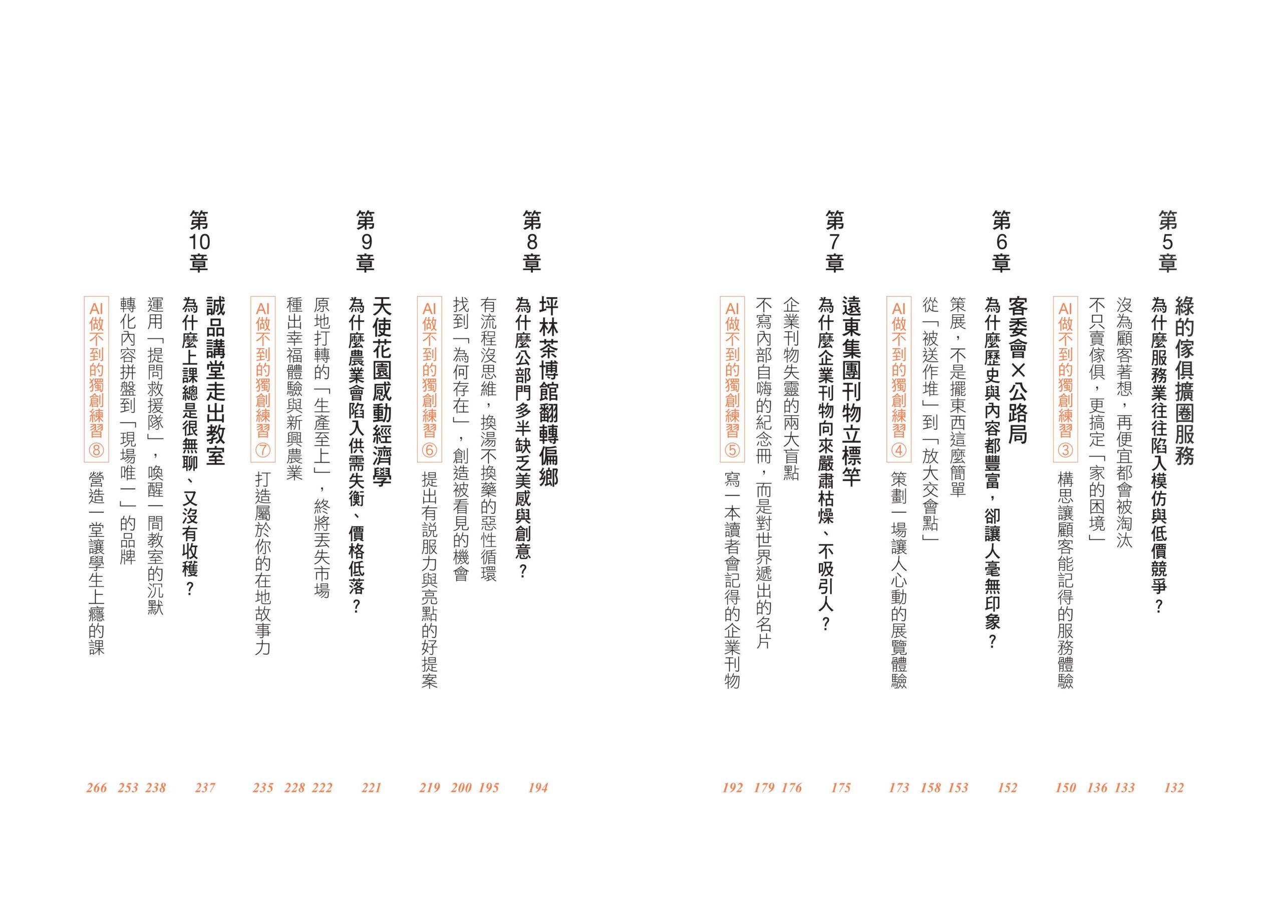 第二,運用這套方法解析八個不同主題的實戰案例,幫助讀者深入理解與應用。包括組織如何解決創新的兩難,品牌如何創造顧客的驚喜感動,如何提出獨特的ESG方案,如何讓團隊充滿創意與熱情,以及如何規劃吸引人的課程。