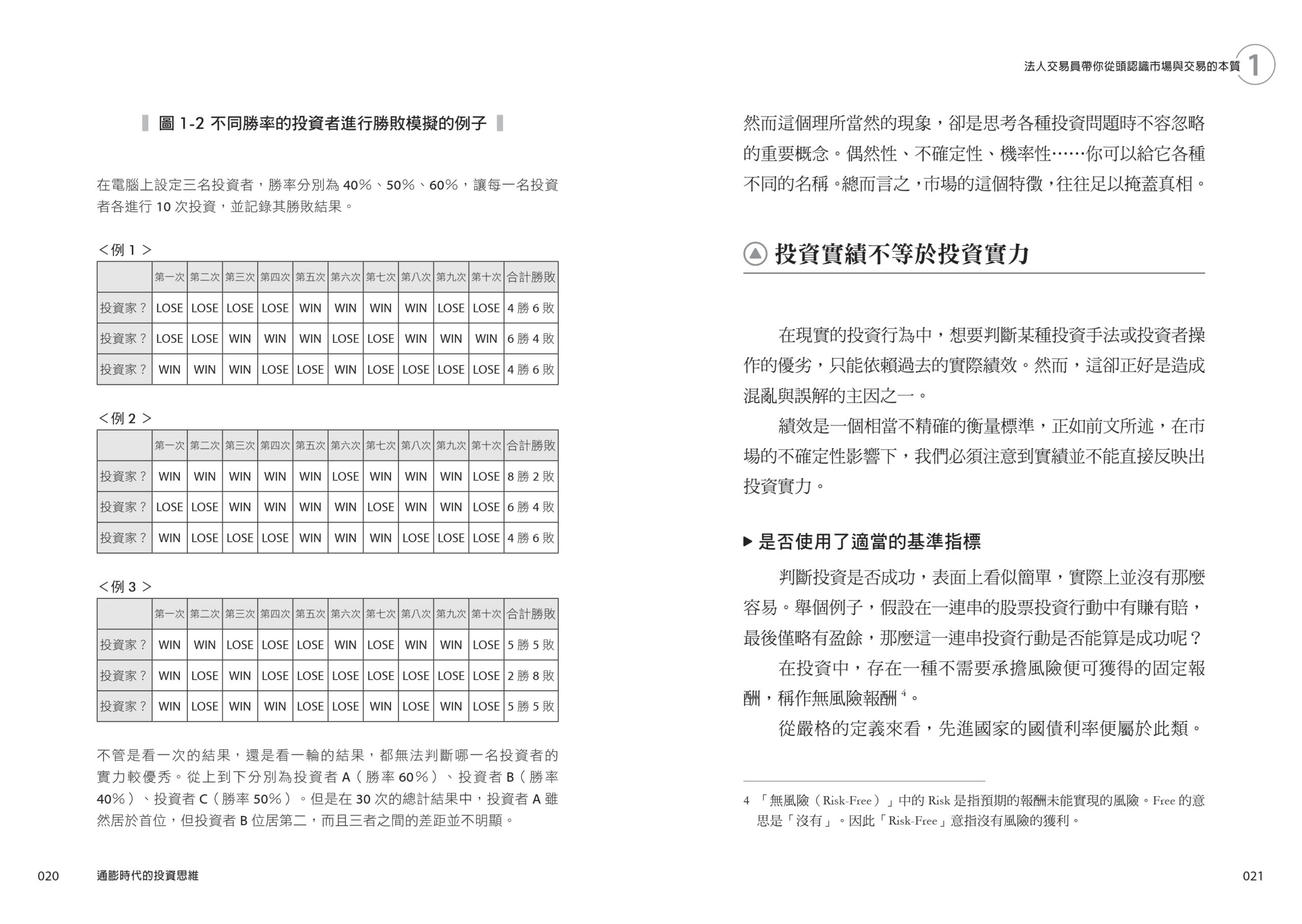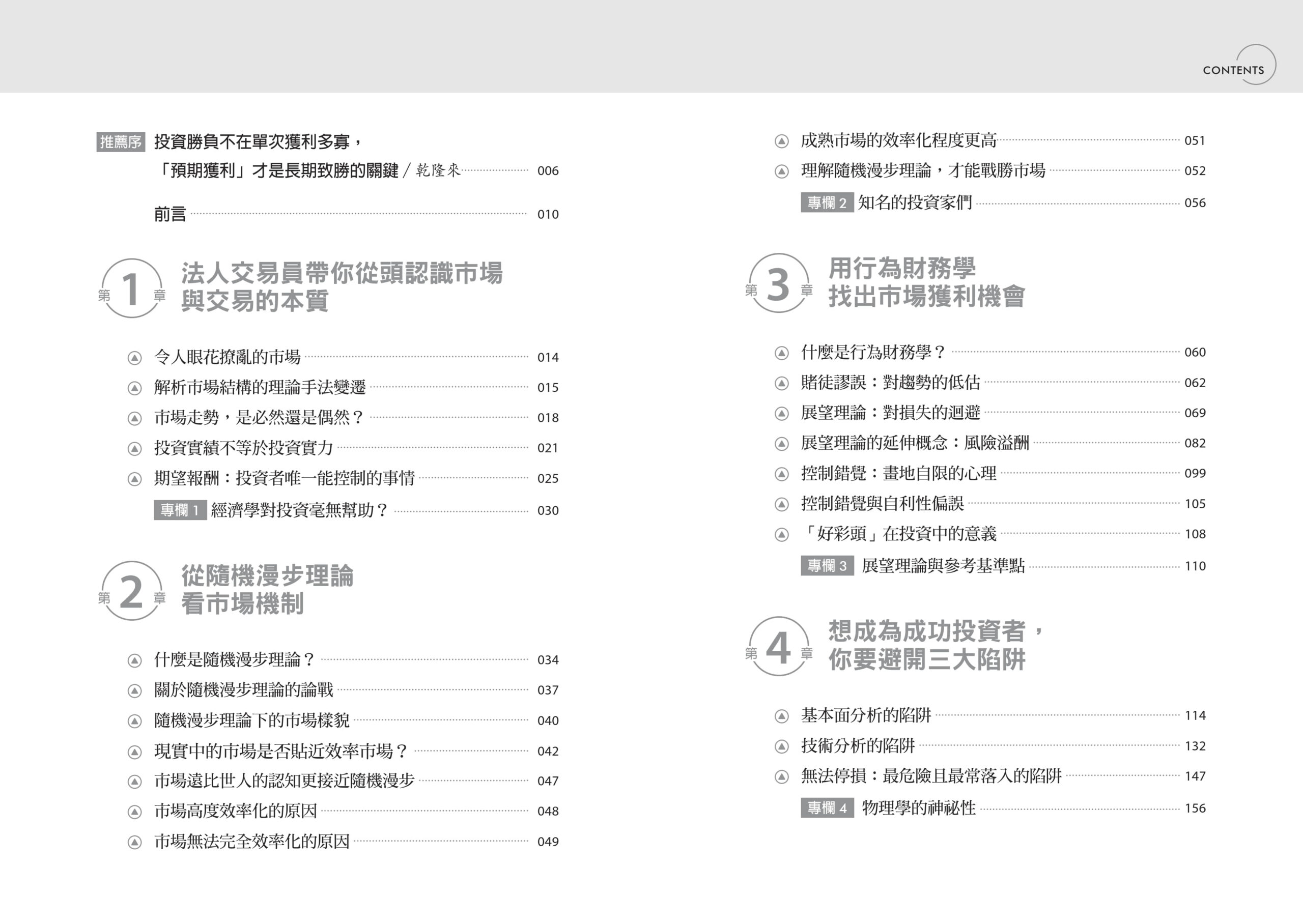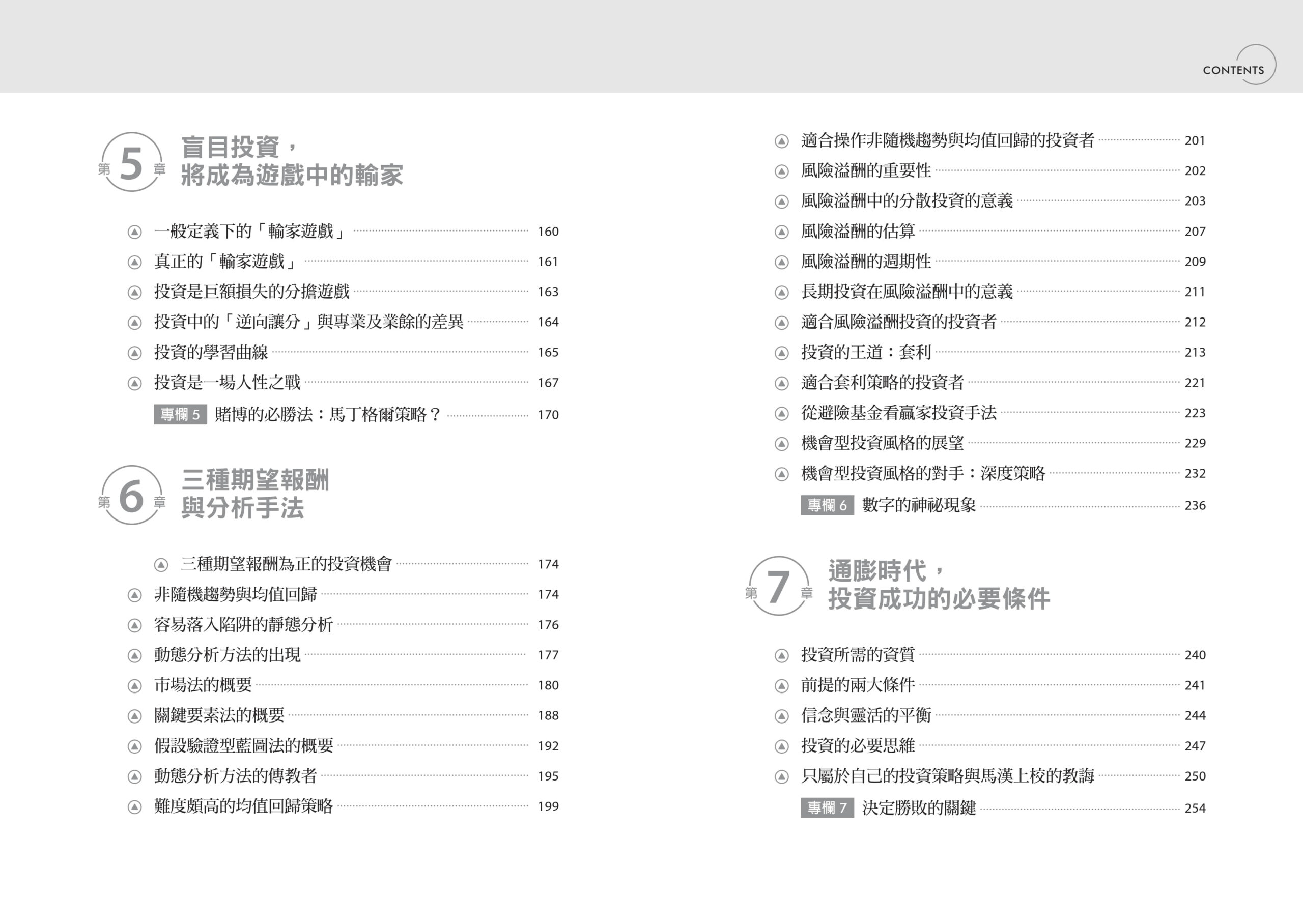 雖說投資理論涉及「不確定性」與「機率理論」,但無需陷入過度學術性的抽象討論。本書重點並非學術上的嚴謹性或理論歸納,而是盡力幫助讀者以直觀的方式理解現實市場的結構。就投資理論而言,這種方式反而更具功能性。