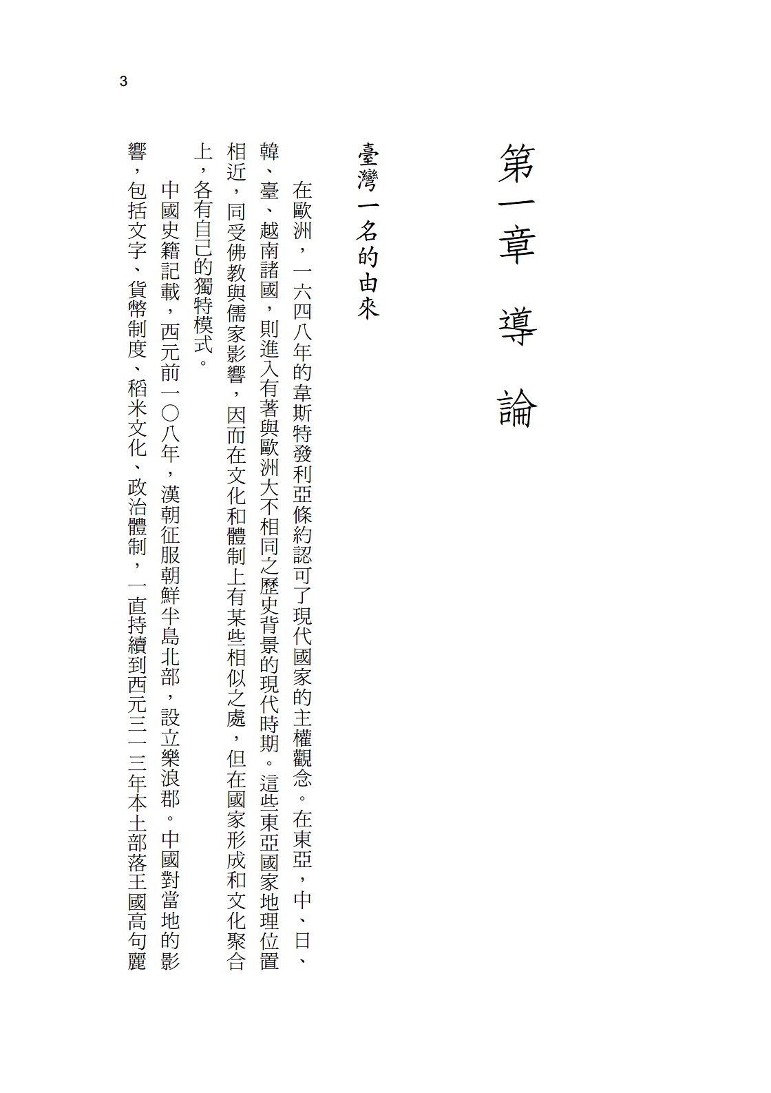 至今仍讓歷史學界莫衷一是的問題,乃是臺灣是否在清朝兩百一十二年統治下被改造為「東方」社會,或臺灣已奮力擺脫中國封閉內向的惰性,發展出外向開放的海洋社會。在這問題能得到滿意答覆之前,我們得強調一樁事實,在清朝兩百年的法理統治期間,臺灣大部分地區從未納入北京中央的實質管轄。作為一地理實體,臺灣的孤懸海外,地處偏遠,使島民不致染上中國對龐然威權與帝國體制的偏愛。皇帝的絕對威權,因從大陸派來的少數官員的貪腐無能,因邊陲島民不受管束的性格,而更進一步受到削弱。島民的確習得儒家倫理,且拜道觀佛寺,在道觀佛寺行中國習俗和禮儀。島上有些上層人士,不管是出於不由自主或出於共同信念,也認同高高在上之中央官員的價值觀。他們習儒家典籍,參加科考,一旦榜上有名,即成為鄉紳,躋身臺灣上流社會。但這一「涓滴細流般」的漢化,對一般人民影響極有限,高高在上的清廷官員,最終未能在根本上將臺灣轉化為真正的「東方式」中國社會。