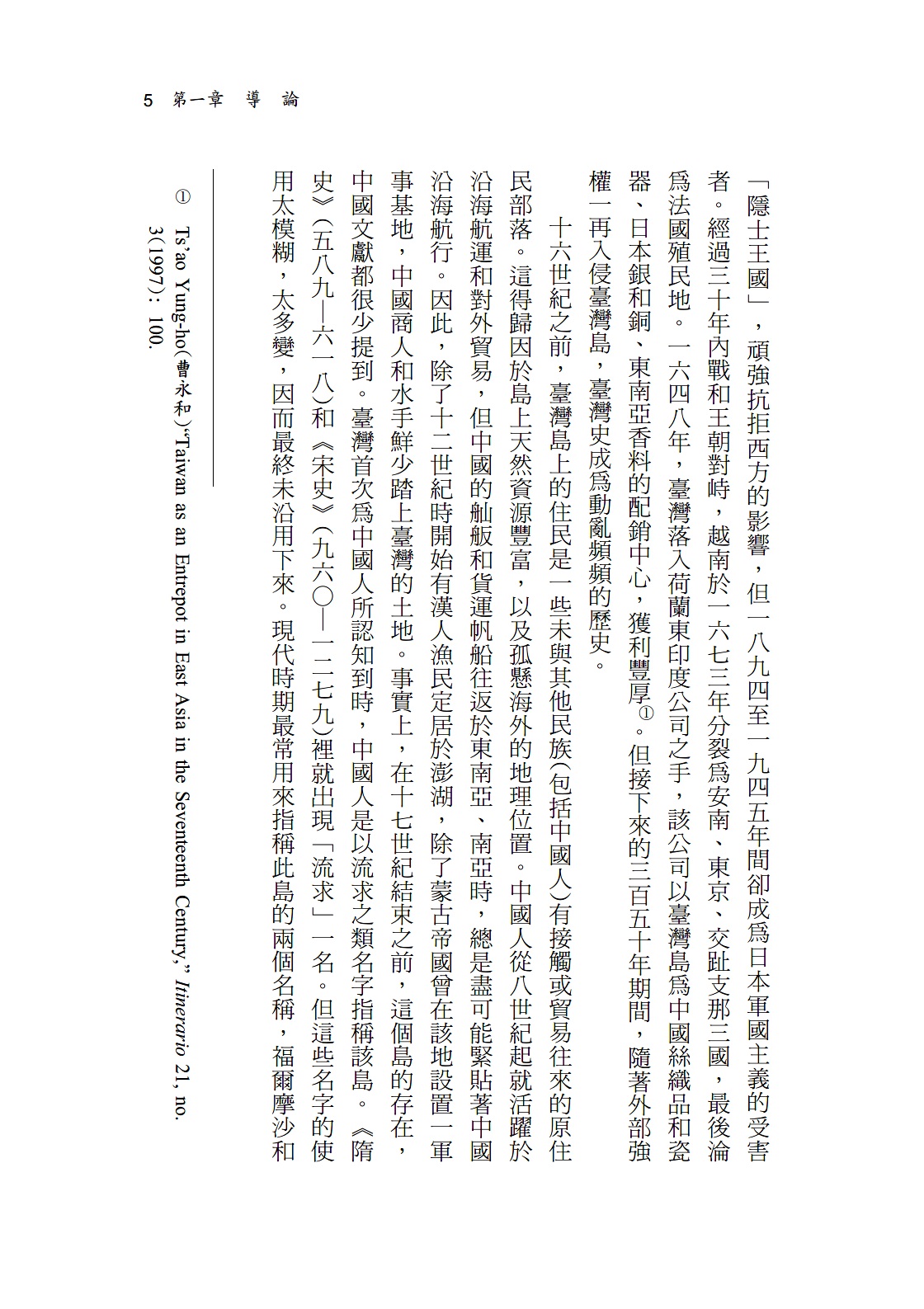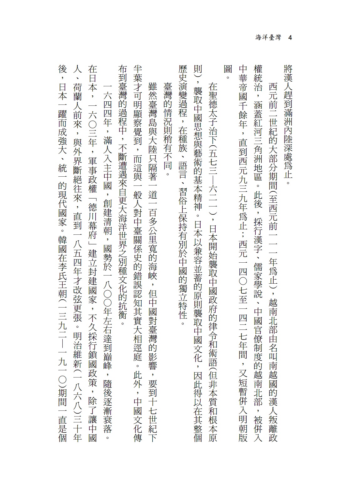 中國對臺灣的影響,要到十七世紀下半葉才可明顯察覺到,這與一般人對中臺關係史的錯誤認知其實大相逕庭。