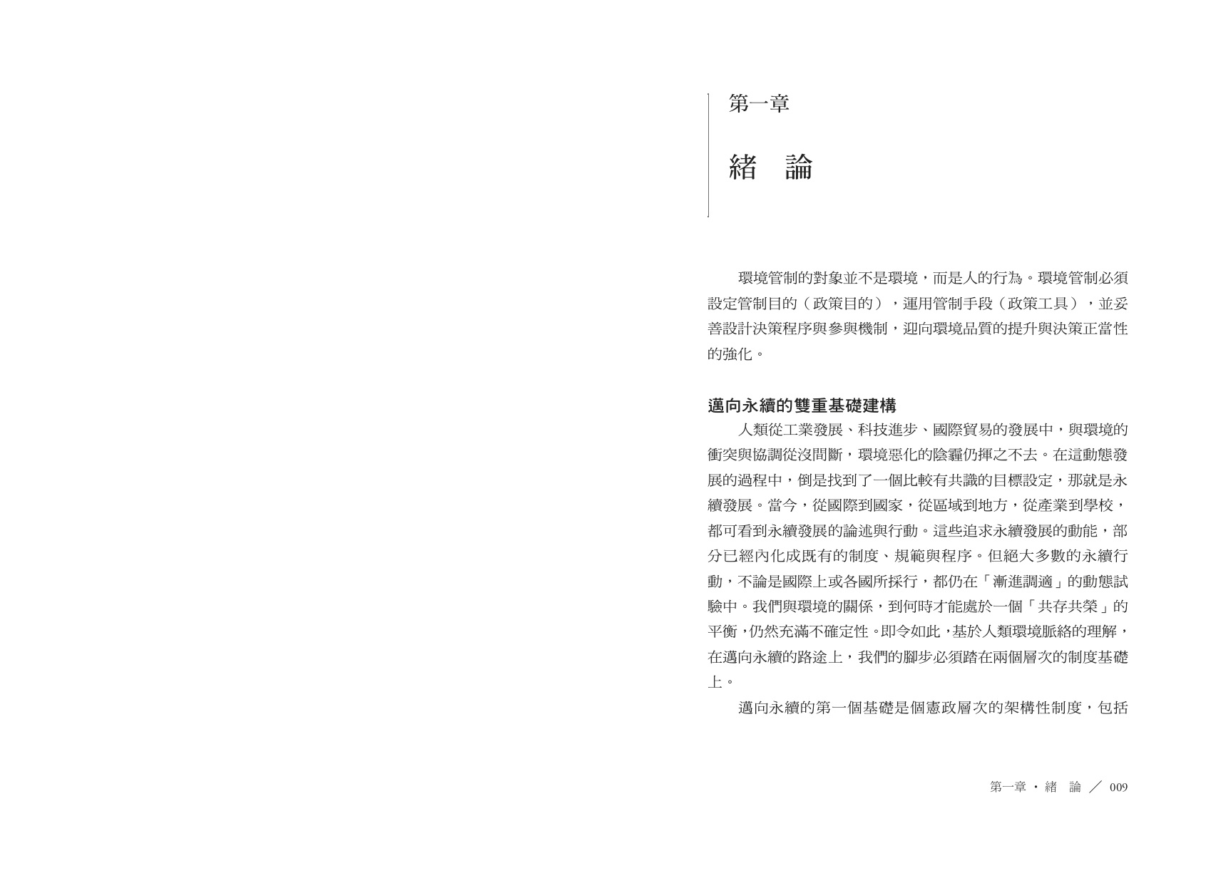 希望透過環境系列的第二本書《環境管制》,呈現環境問題的管制結構與脈絡論辯。全書的各章議題當中,除了環境影響評估最具有議題代表性外,傳統命令控制式的管制相對於改革環境主義的變化,也是最精彩的部分之一。改革方向中朝程序發展的協商,以及翻轉政策工具的經濟誘因,都是新型環境法的重點。協商與經濟誘因後續在國際環境議題上的運用(例如氣候變遷的碳稅或碳交易市場),更是當中我自認最精彩的部分。