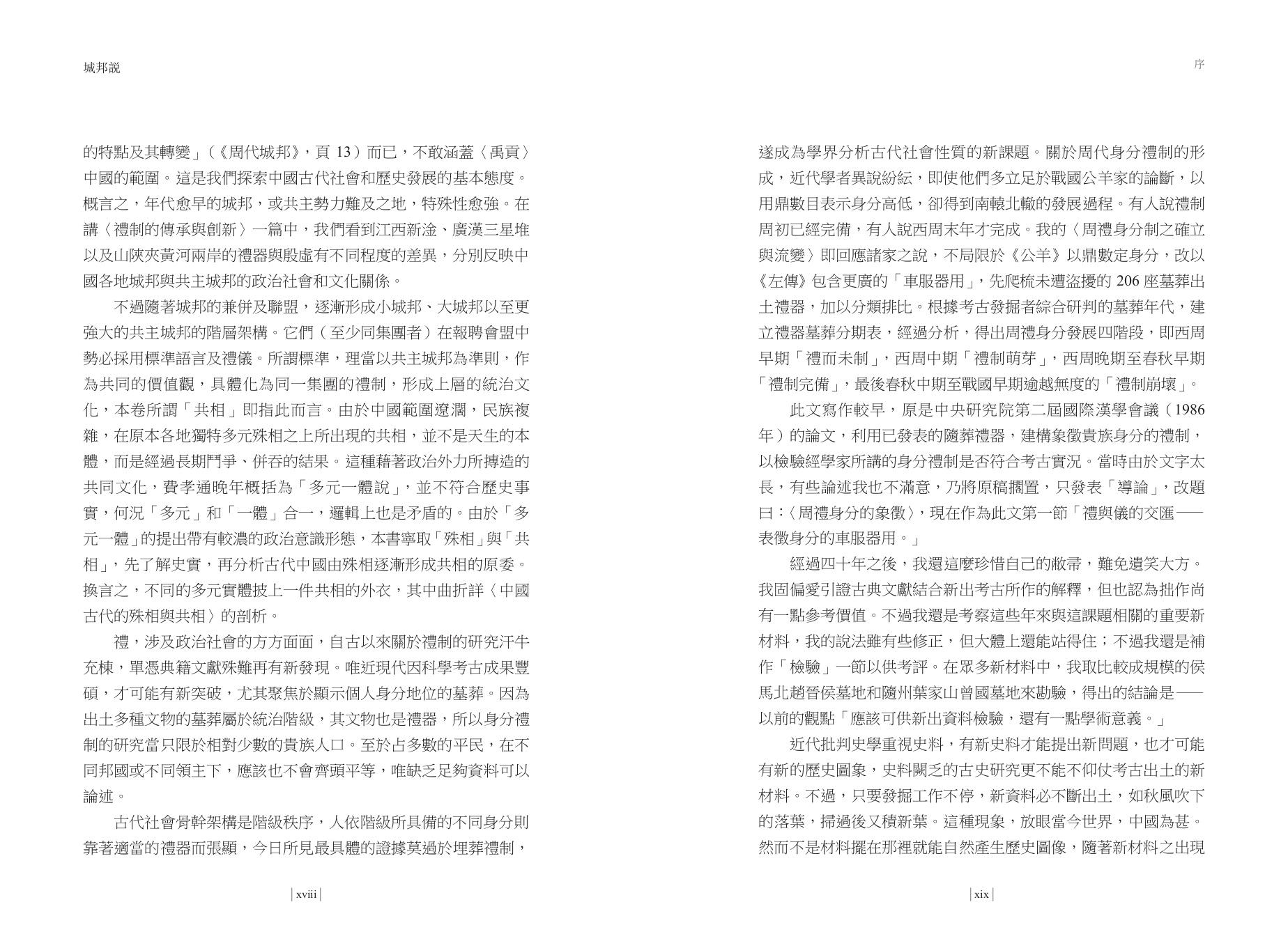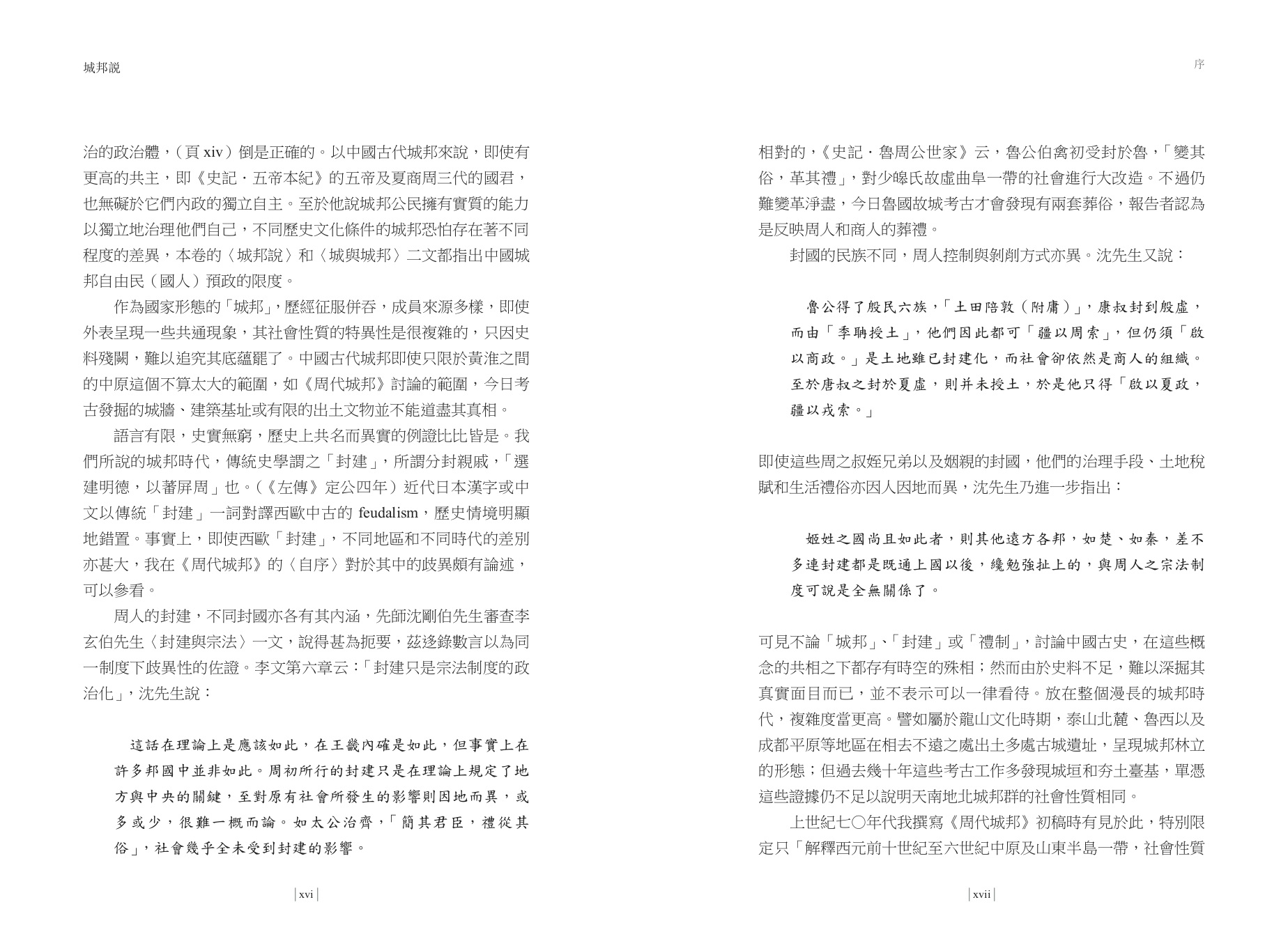 本卷七篇,前四篇關於國家形態的城邦,後三篇偏於社會性質的禮制,相輔相成以認識中國古典時期歷史。解釋夏商周三代的中國古代國家「城邦說」,不像關涉秦漢以下兩千年的「齊民論」之通行,但仍能概括中國先秦兩三千年政治社會的大架構。城邦說的論證俱詳於本卷第一篇的綜合論述和第二篇著重考古出土古城遺址的資料,證據理路應可以禁得起檢驗,所以我也沒有針對一度有人提出的古代帝國或「雛型帝國」的說法提出辨駁。至於第三篇齊魯故城兼具考古與文獻,第四篇說史以解經,從《商頌》的「景員維河」一語證成當時的國家形態是城邦。
