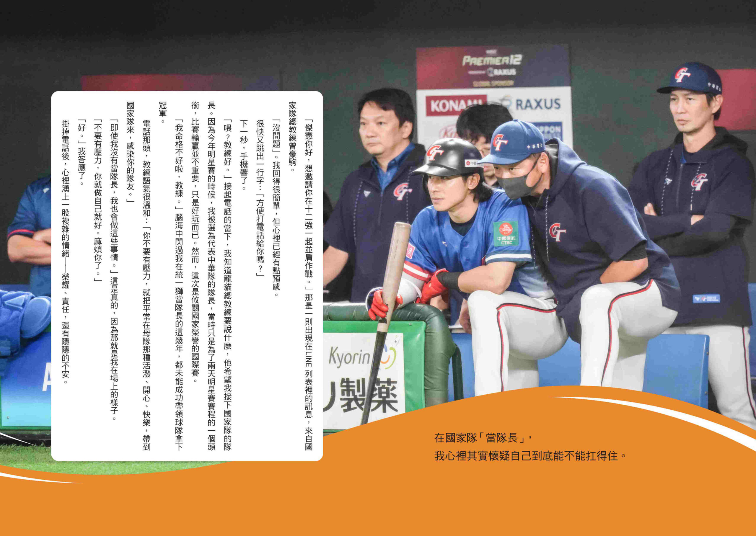 「隊長」的責任不只是下達指令,而是凝聚信任。表面上他總愛笑著開玩笑,實際上卻扛著全隊的情緒與期待,學會在壓力中保持穩定,讓大家都能放心拚戰。此外,從職棒對手到國家隊隊友,他更見證了競爭者如何從試探到託付,形成超越勝負的默契,真正的勝利不只是比分領先,而是所有人願意為彼此而戰。