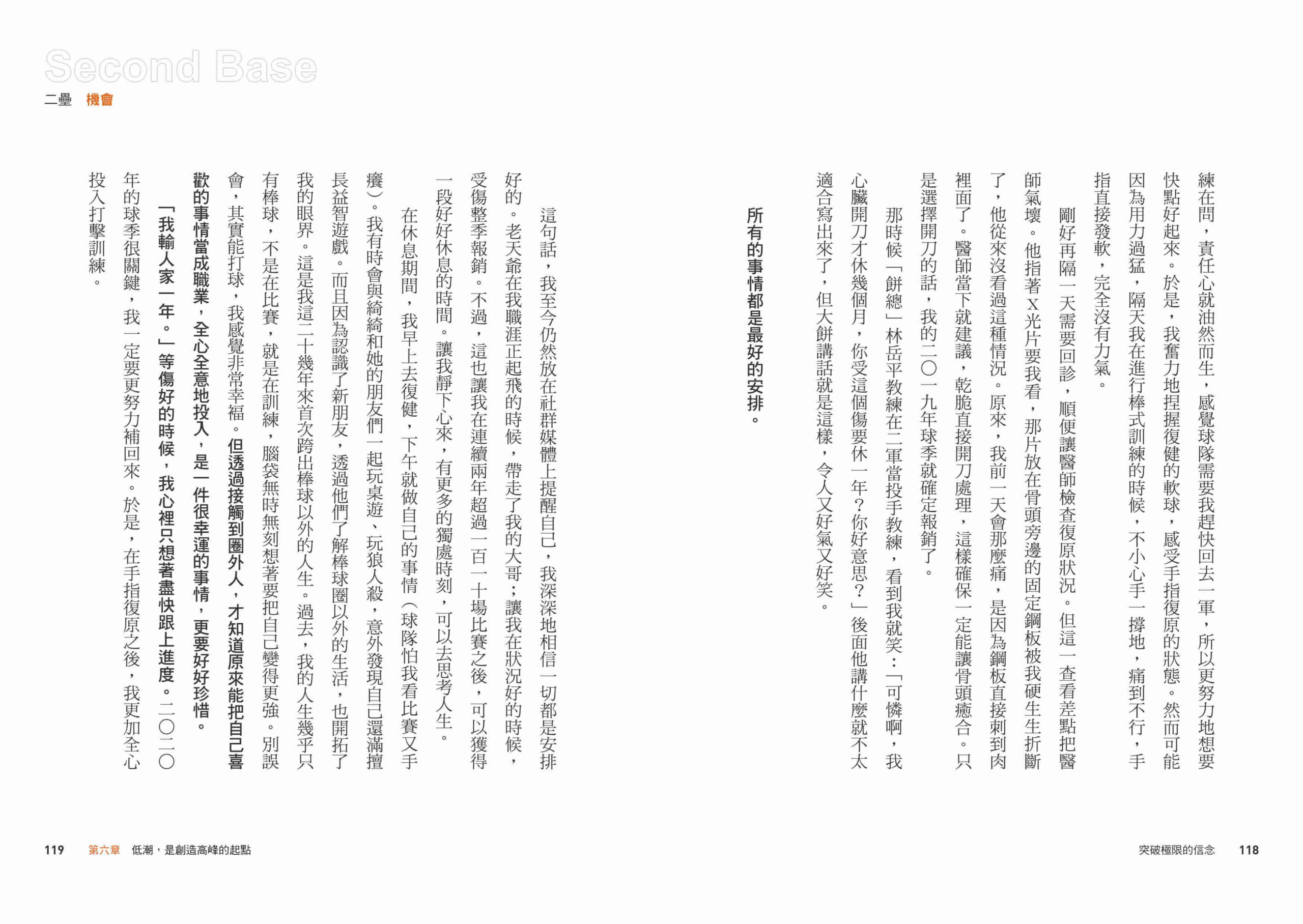 他相信,極限是用來突破的,這正是一次又一次繼續前進的理由。當人生賽局走到關鍵時刻,翻開這本書,也許你會找到自己面對挑戰的步調與信念。