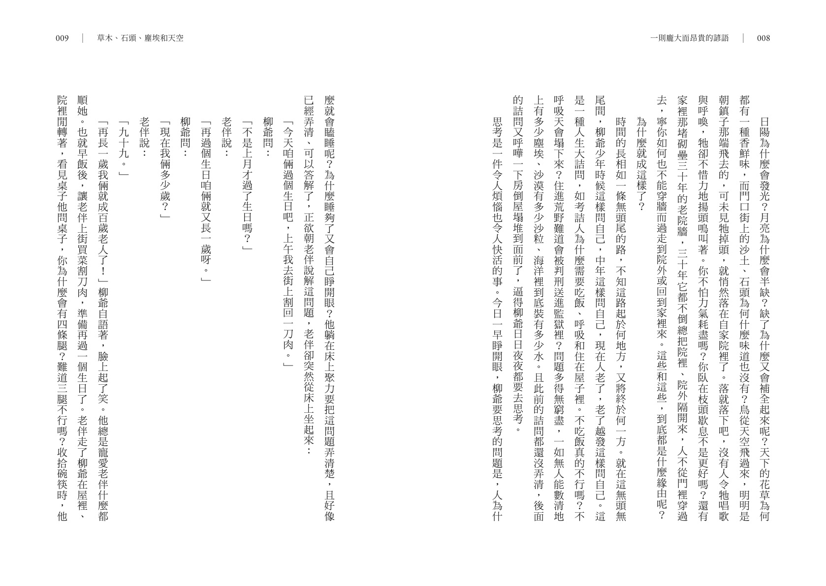 完全不能判斷為了那部長篇而產生的這個短篇集子怎麼樣,一如我將無法知道三十年、五十年,甚或一百年後的某一天,有個讀者(也許是兩個或三個)不知緣何讀到了那部家藏的長篇後,會脫口而出說句什麼話。而這部充滿間隔、斷續寫就的短篇小說集,我習慣地又將其給幾個朋友看,十天、二十天的時間後,得到的回饋大多是沉默。偶有與文學關聯鬆疏的幾句讀後感,大約也是情誼、面子的不說不可、說也不可的應酬語。
